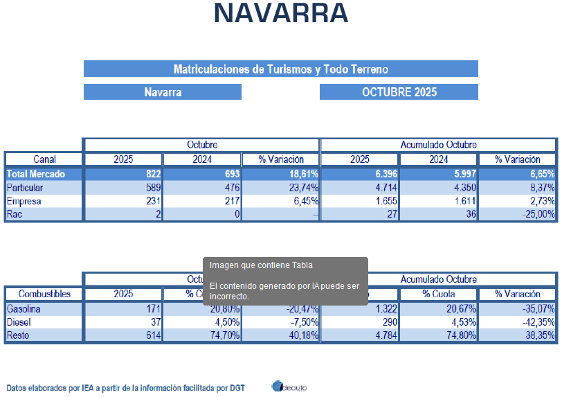 Tania Puche, directora de comunicación de GANVAM, apuntó que “el mercado continúa en octubre su tendencia al alza y acumula 14 meses seguidos en positivo. Las compras de particulares siguen marcando importantes subidas con respecto a 2024 y, por segundo mes consecutivo, superamos los niveles prepandemia, con un buen comportamiento de las matriculaciones de los vehículos electrificados. Ahora bien, es necesario aplicar medidas inmediatas y dotaciones adicionales para dar respuesta hasta final de año a los compradores, especialmente, en aquellas comunidades donde se han habilitado listas de espera ante el fin de los fondos del plan Moves. Hay que disipar cualquier incertidumbre en torno a la decisión de compra porque no podemos permitirnos que el mercado pierda impulso, justo en el momento en el que empezaba a recuperarse”.